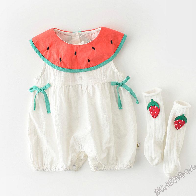 ロンパース 新生児 春夏 スイカ おしゃれ ベビー 女の子 男の子 可愛い 子供服 赤ちゃん ベビー服 66 73 80 90 ノースリーブ 春夏秋冬 出産祝い プレゼント C17 Baby100 がんばれちゃん 通販 Yahoo ショッピング